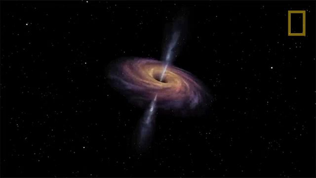 an artist 's impression of a black hole in space with a national geographic logo in the corner