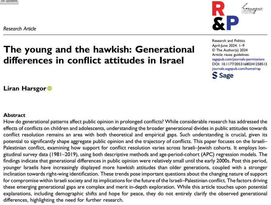 Key finding: Young cohorts have significantly lower support for a Palestinian state and identify as right-wing more than older cohorts