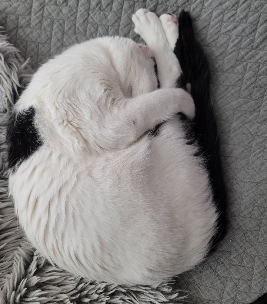 Murder Mittens doing yoga in her sleep....