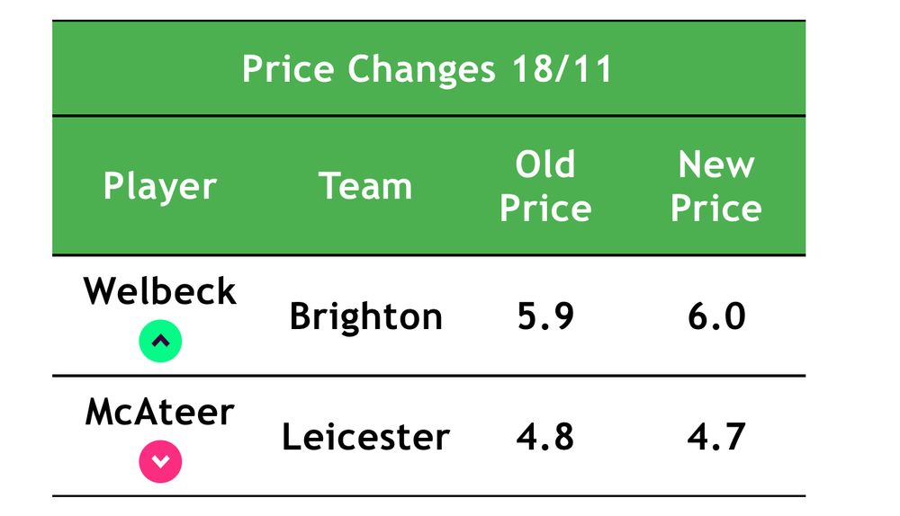 Welbeck should be very close to rise though, Duran and Raya close to fall.