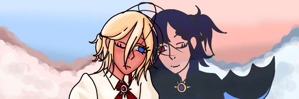Here's a watercolor of my ocs from my banner 💛💙