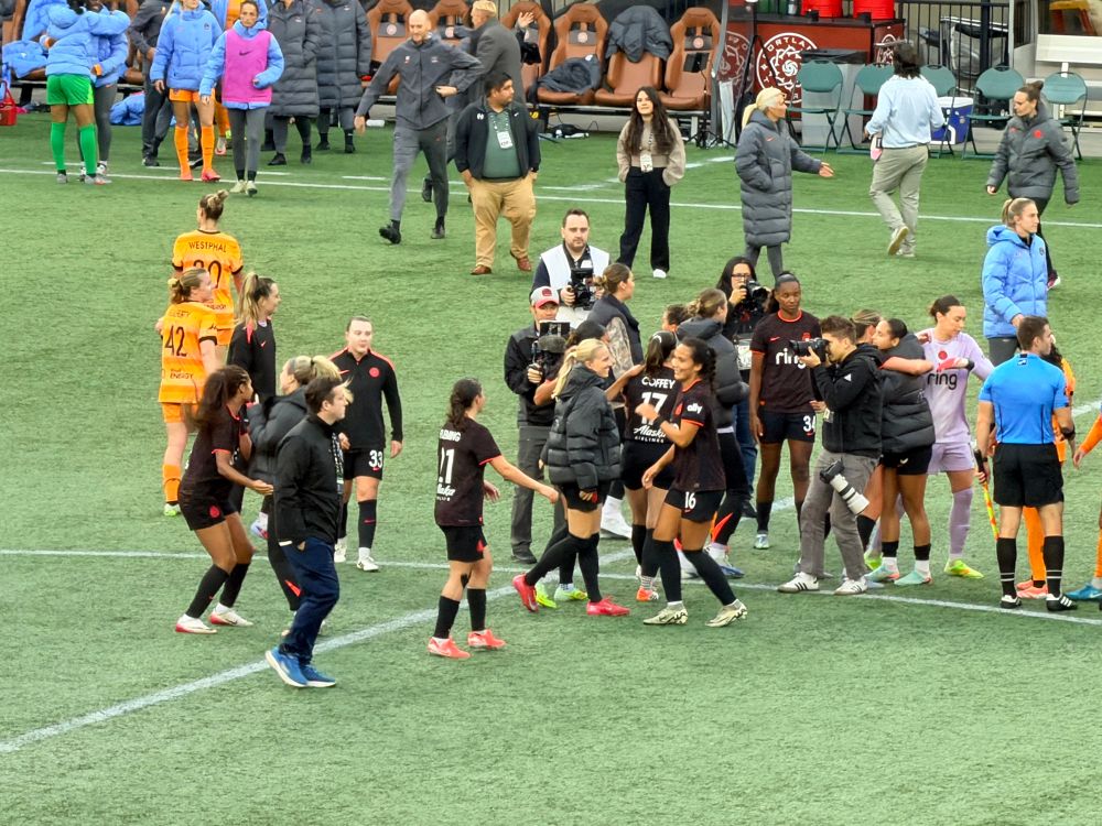 Waving hello to @sdsirens.bsky.social! Super happy to see you all make the trip up. Let’s keep building this thing together. #NWSL