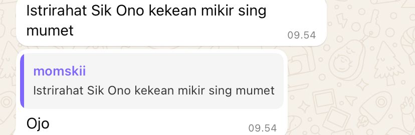 aku tuh dirumah berdua doang sm ibok, saking gapernah keluar kamar, trs keliatan sepi bgt gaada suara dirumah, aku ngechat ibok dr dlm kamar, tp cb klian yg org jawa baca deh, ibok jg klo dichat tuh ga nyambung jawabannya😭🙏🏼