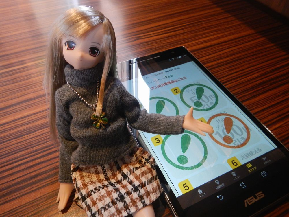 来店スタンプが4つ溜まったので、次回はランチで100円引き⭕