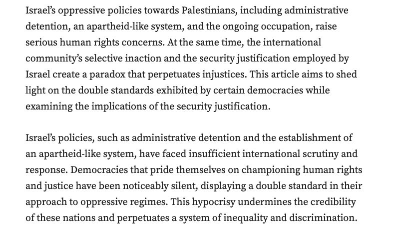 Israel’s Oppressive Policies: The Hypocrisy of International Inaction and the “Security concern” justification paradox