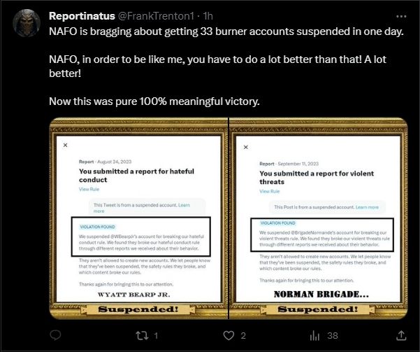 And the first cope of Geffy if anyone wants to know. He has only suspended two accounts while #NAFO is suspending almost 33 accounts on a daily basis.