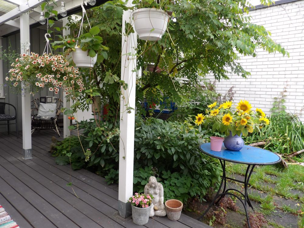Elokuun viimeinen ilta kotiterassilla. Pitäisikö vaipua alakuloon, apatiaan vai melankoliaan? Toiveikkuuteen ei liene aihetta!