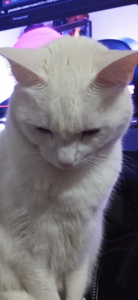 Não é o gato tristinho do bluesky mas é a minha gata tristinha 🖤