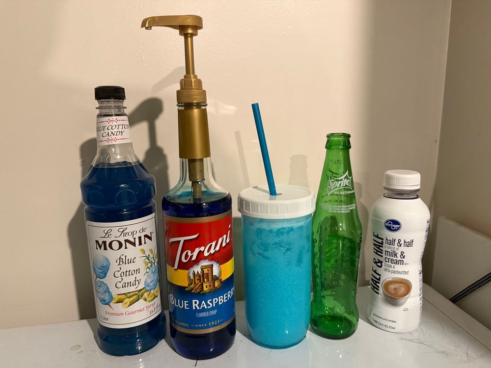 Mtn Dew with green apple + vanilla syrups, dark cherry popping boba, and sweet vanilla cold foam.