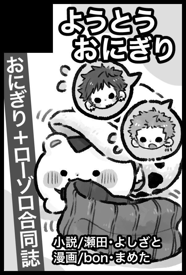 瀬田さん、bonさん、よしざとさん、まめたによる🍙ちゃん+🐯⚔️の合同誌が出ます!!各々好きを詰め込んだ本になります✨よろしくお願いします!