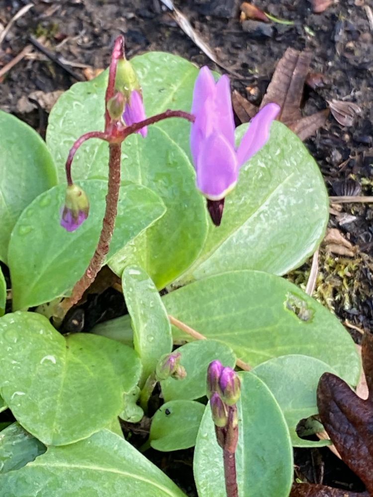 Blooming now in my treebank Oak Prairie/Meadow in Sellwood in Portland: Western Buttercup, Shooting Star, and both colors of Wild Ginger.