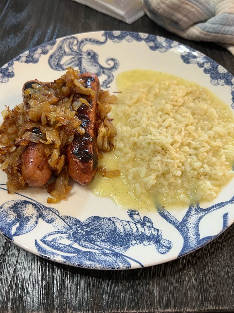 Chicken sausage & creamy Parmesan risotto for dinner!