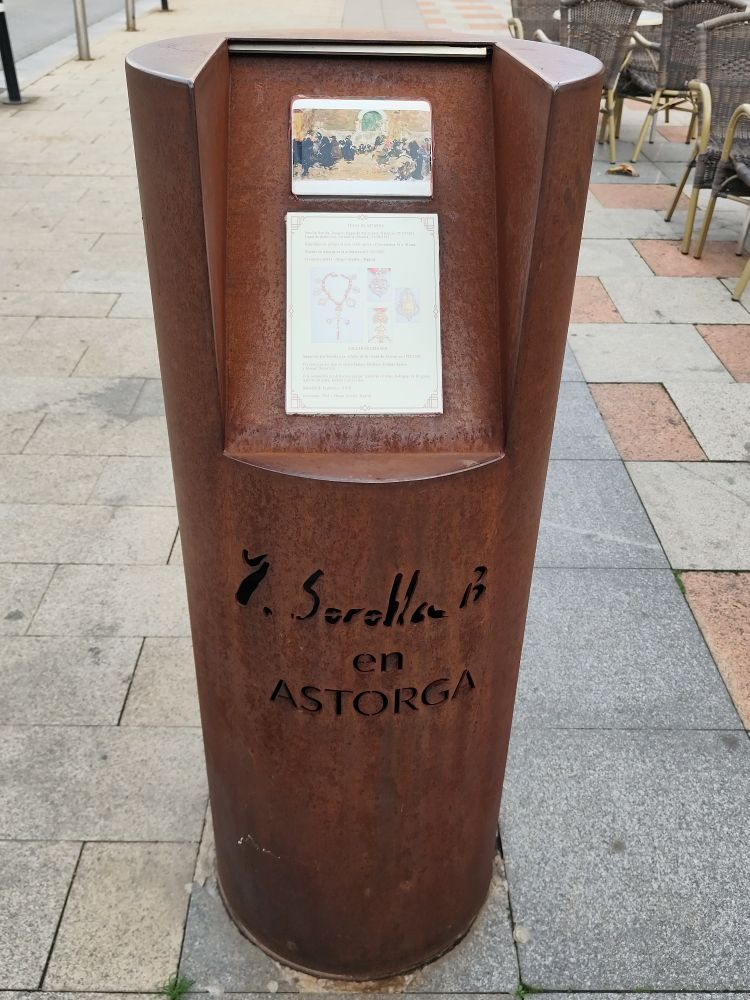 Aquí tenéis un pequeño monolito que le dedica la ciudad de #Astorga recordando la visita del pintor, fechada en la primavera de 1902 o 1903. Reproduce una nota de color del #MuseoSorolla.