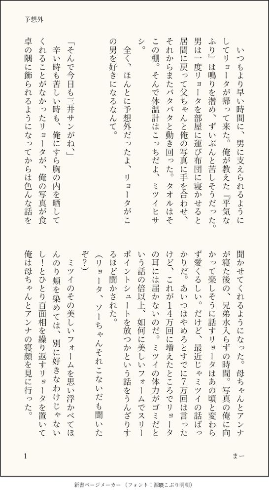 何か書きたいのに何も書けないから、お題が〈予想外〉だった時のワンライ再掲します。