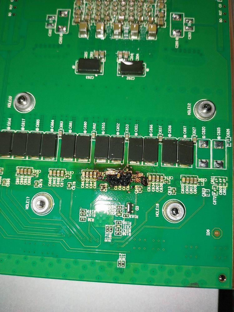 The same failure happened again on the same board. This is what it looked like on the other side of the board.