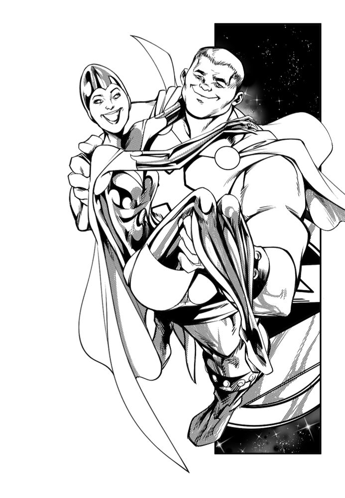 Here's our take on SUN LORD & INVISIBLE GIRL, SunBoy & Both InvisibleKids/FireLord & InvisibleGirl amalgam.