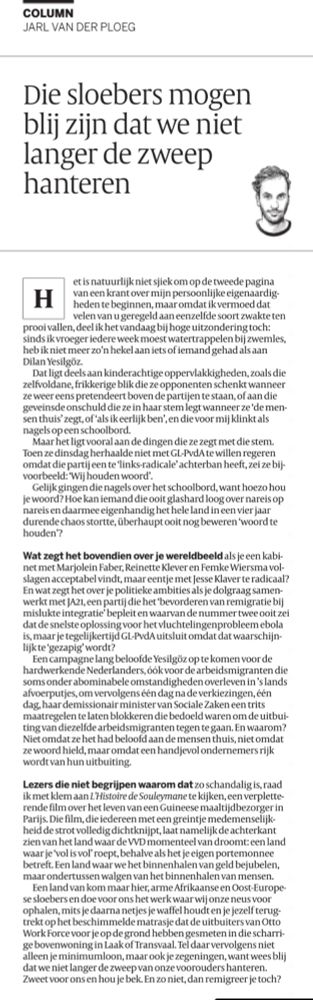 Toevallig ging gisteren in de VK de column van Jarl van der Ploeg over dit onderwerp: