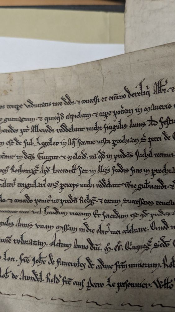 Faire une recherche pour un doctorant et découvrir une charte multiscellée enliassée dans le dossier. Joie et bonheur !