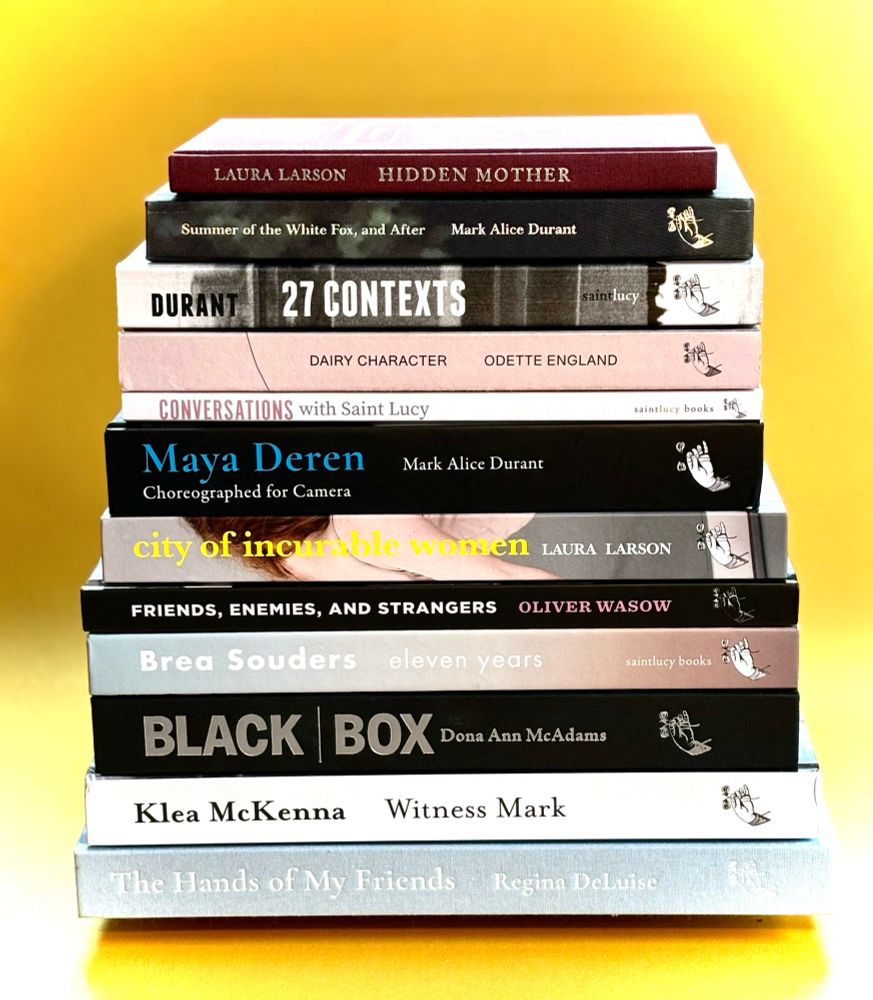 Here is the stack of 12 available titles published by Saint Lucy Books since 2017. What an honor and pleasure to collaborate with such a stellar array of artists/writers.