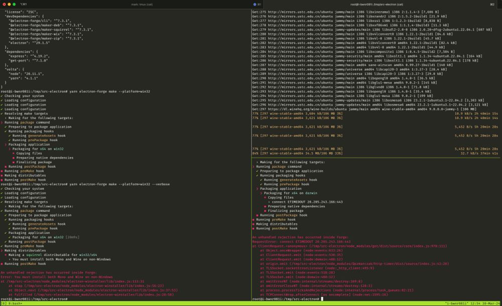 在 Linux 上构建 electron Windows 版本,三个小时过去了,还没构建完🤷