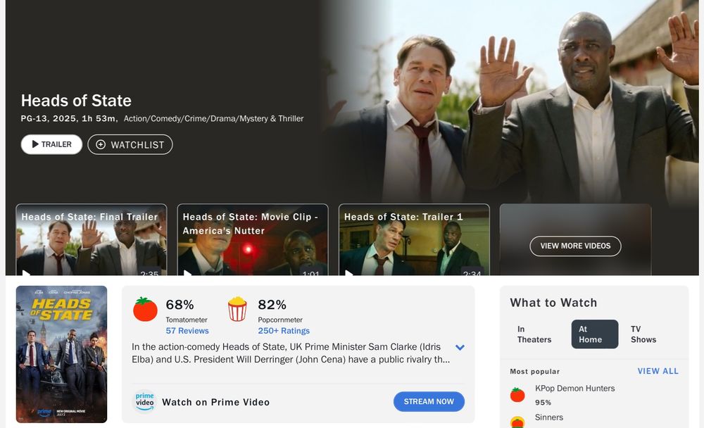 Perfect summary. Silly, inspiring, energetic, and a little bit hopeful. #HeadsOfState #RottenTomatoes #AmazonPrime