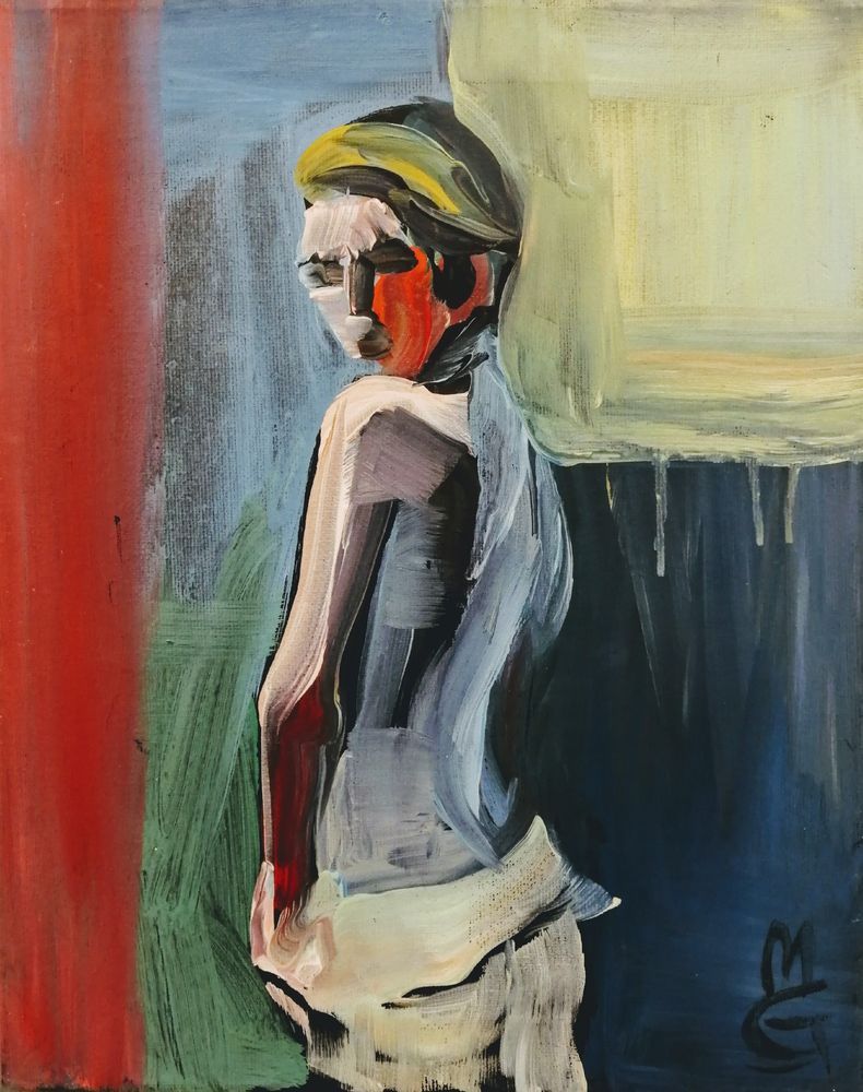 She is sitting next to a painting done long time ago by a family friend.
