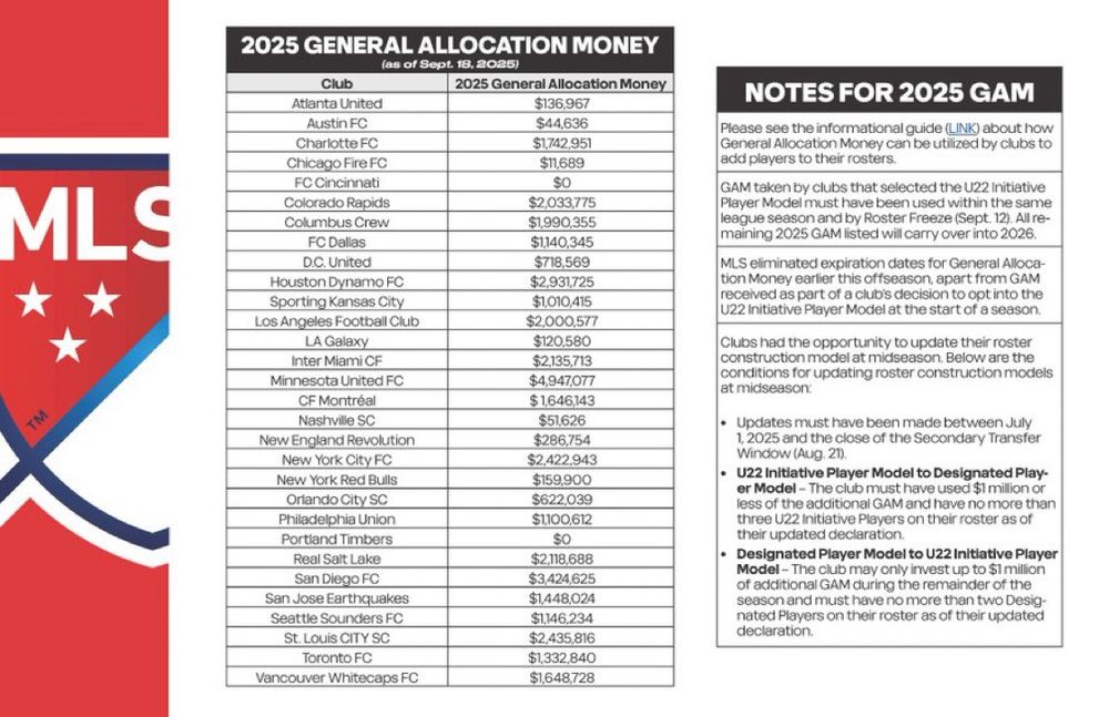 The MLS Club Roster Profiles have been updated w/remaining 2025 GAM after the roster freeze date. All GAM listed carries over to next season.