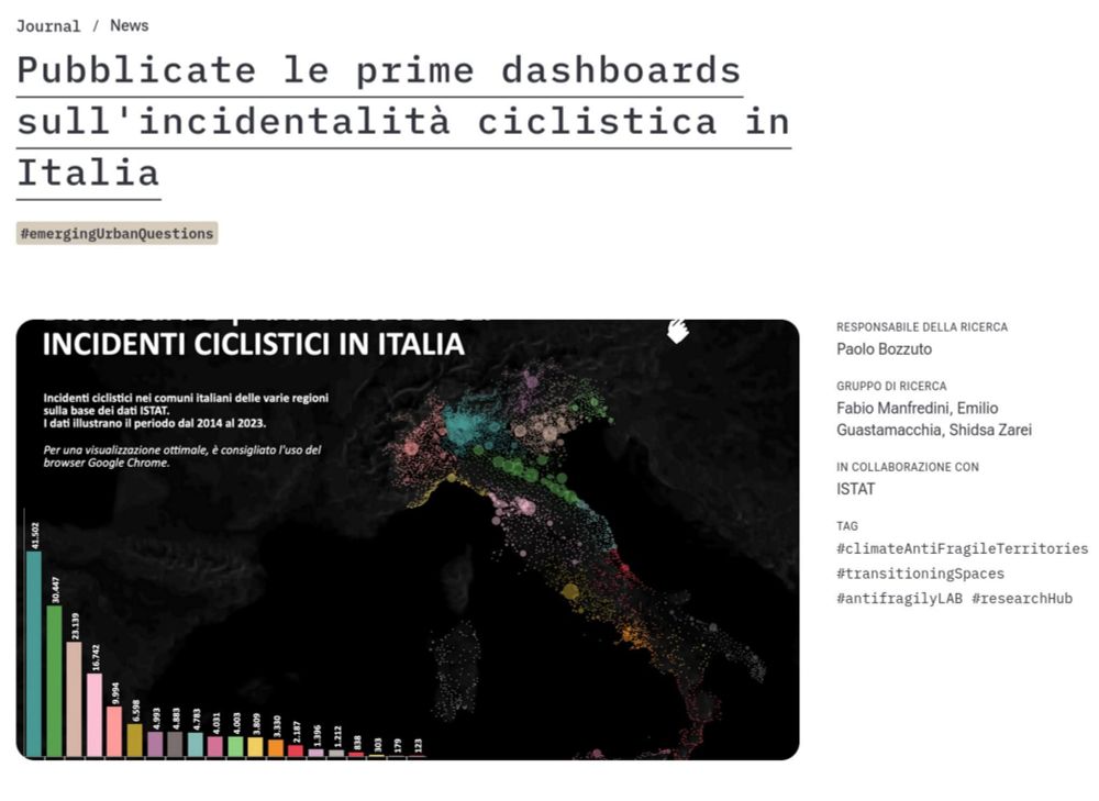 Si parla molto di questo bellissimo lavoro del PoliMI sui dati ISTAT sugli incidenti che coinvolgono i ciclisti.