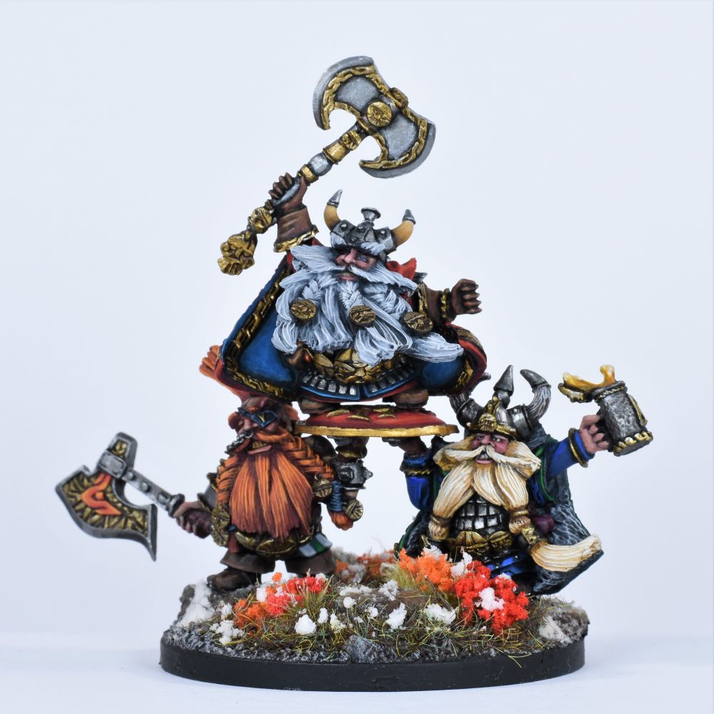 The biggest changes are that the golds are based, and I did some work on the rock the Saurus is standing on. I want to add a little mud and grass to it when im done with everything else.