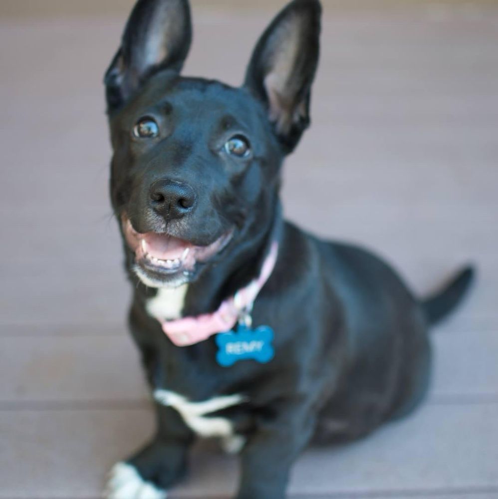 Here you go. My kids were told that she was a Lab. Then her body elongated and her ears grew, but her legs didn’t…haha…her name is Remy.