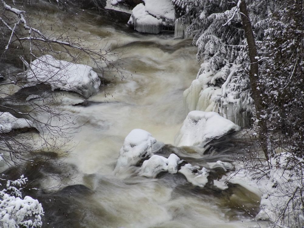 While shooting a local waterfall, this chap came snowshoeing out of the woods below for an impromptu shot of the falls. Little did he know, he provided me an opportunity for a cool landscape shot with a subject in a red coat. Perfect!