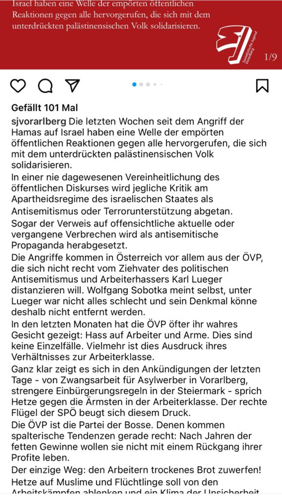 SJ Vorarlberg legt auf Instagram weiter nach. Präsentiert sich als Opfer, schafft es offensichtlich nicht Antisemitismus und den Terror der Hamas zu verurteilen.