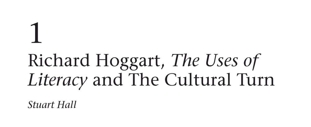 Richard Hoggart, The Uses of Literacy and the cultural turn, Stuart Hall.