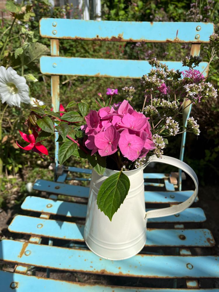 This morning’s cuttings - hydrangea, marjoram, fuchsia, willowherb, red valerian.