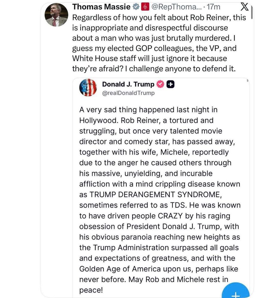 Loving this energy! Rep Thomas Massie’s response to Trump’s comments about Rob Reiner’s passing.