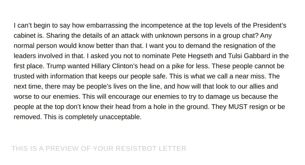 Just sent this to my senator. I know he’s not going to care; he really seems like a self-important underling who Trump doesn’t even know/care exists, but here we are 🙃 #republicans @resist.bot