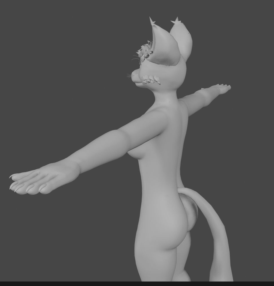 I plan to add blendshapes so its possible to make it look male meow miaw. The last picture is concept art I made for its design.