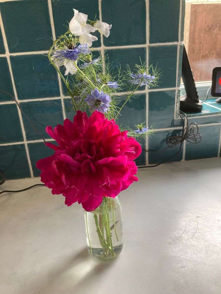 Unscented but still beautiful: peony,cornflower, columbine