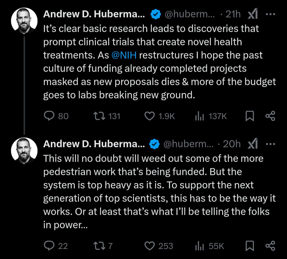 Huberman has some novel ideas now that the NIH is "restructuring". Note that he has been chatting about methylene blue lately, so his ideas are definitely NOT pedestrian.