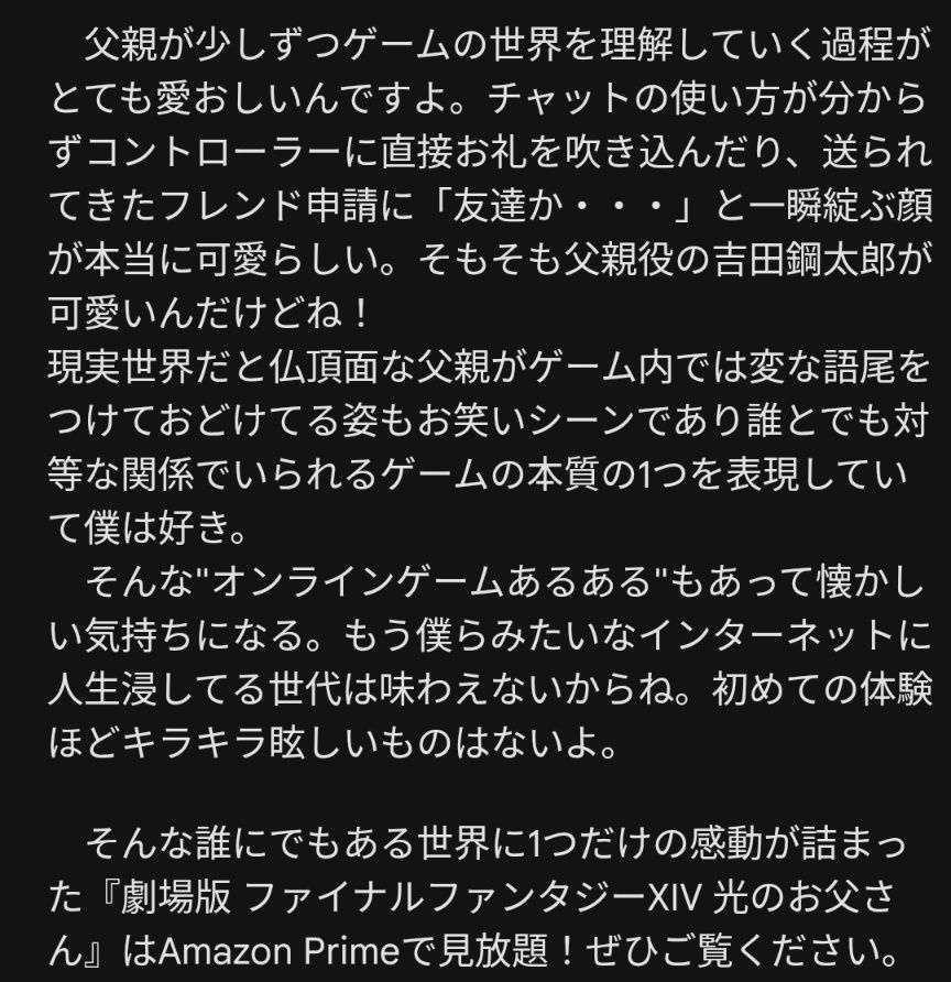 『劇場版 ファイナルファンタジーXIV 光のお父さん』って映画がめちゃ良かったのでネタバレなしで語る〜!