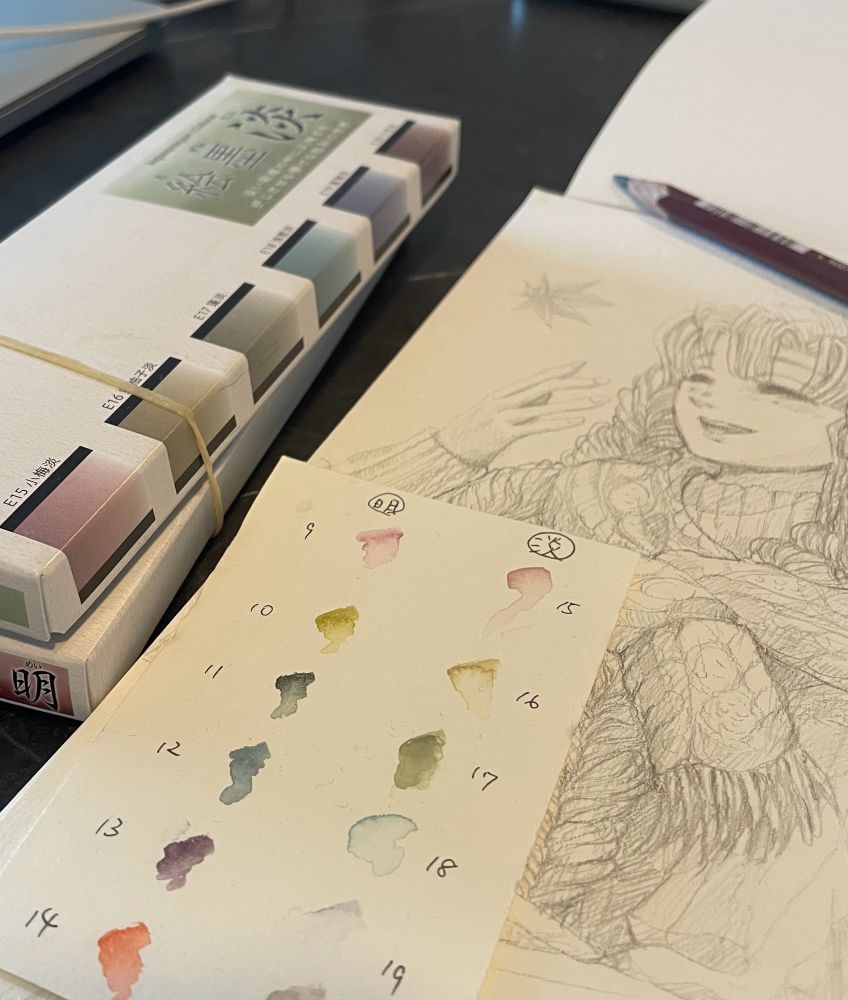 今日昼間の仕事が終わったら放置していた鉛筆画を塗ろうかな。これは炭が混ざっていて良い感じのくすみ色の固形絵の具。