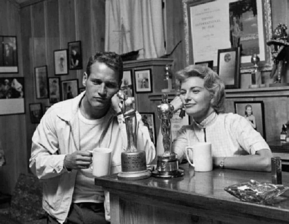 But when this photo was taken her husband - PAUL NEWMAN - had never won one, so, she made one for him and called it ‘Noscar’ (No Oscar).