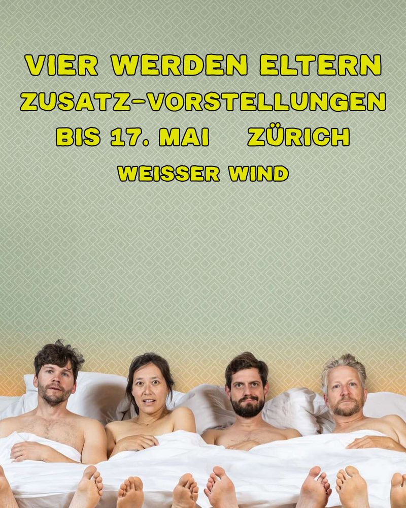 Wiederaufnahme! Die Komödie VIER WERDEN ELTERN, die der Michael Elsener und der Roman Riklin zusammen geschrieben haben, kommt zurück nach Zürich. Vom 6. März bis 17. Mai auf der Comedy Bühne Weisser Wind zmitzt in Zürich, im Niederdorf. #komödie #regenbogenfamilie #theater #lgbtq #queer #couple