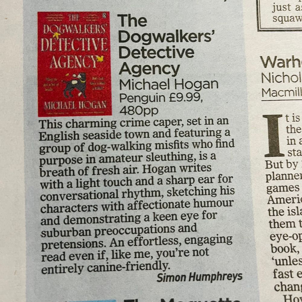 "Thursday Murder Club with dogs" - Marian Keyes