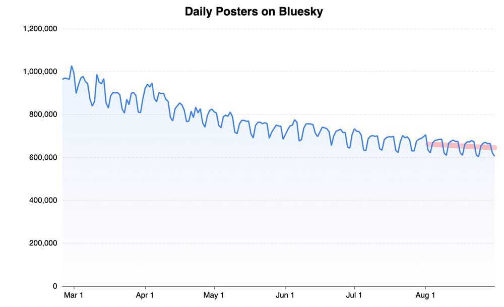 The decline on active metrics is real (maybe flatlining more now?) - there's a question on whether Bluesky is reliant on external events to create huge moments of growth.