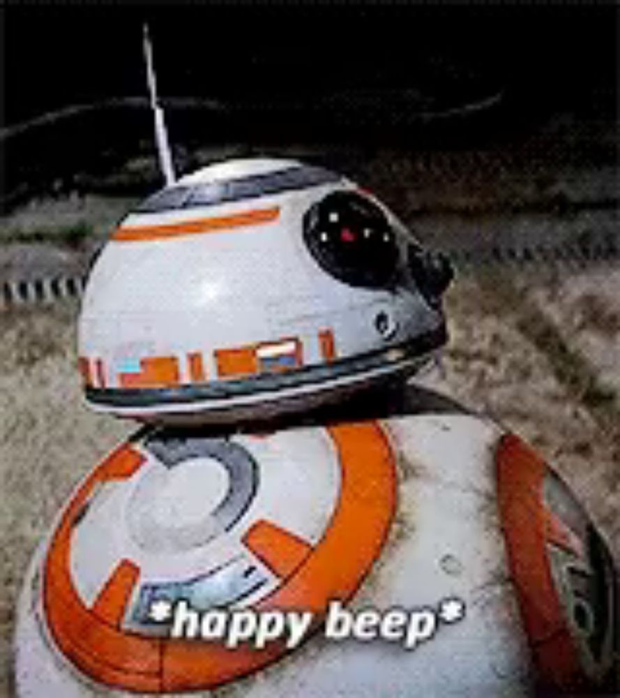 ALT: a close up of a robot with the words happy beep on it