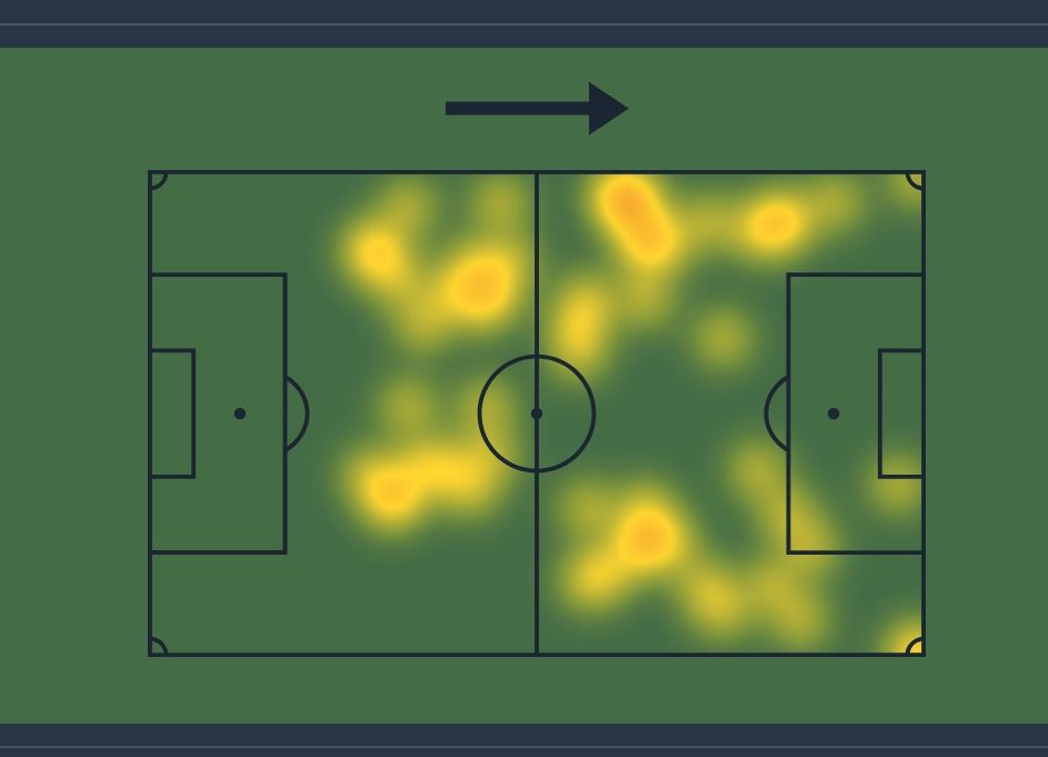 o mapa de calor do último jogo diz justamente o contrário, tá voltando muito porque a bola não chega e flutuando pelos dois lados em vez de distribuir o jogo pelo meio. Observe que pelo meio não tem quase nada de movimentação.