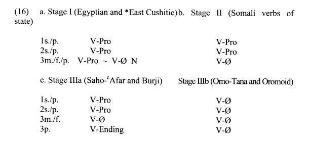 The shared Egyptian-East Cushitic situation resembled that of Egyptian, and East Cushitic generalized the lack of 3sg gender distinction with full noun as 3sg pronoun forms.