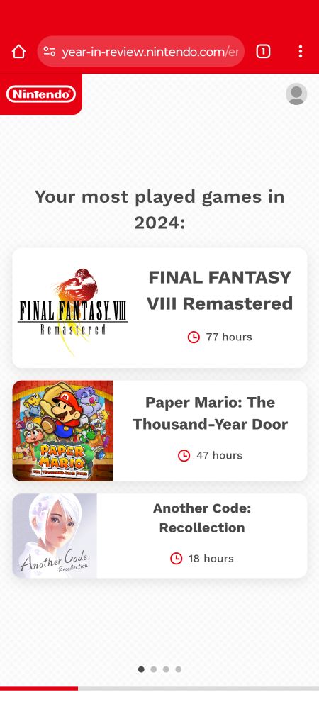 Thought I'd share my Switch year in review. Who'd a thunk that I sunk 70+ hours into Final Fantasy VIII?