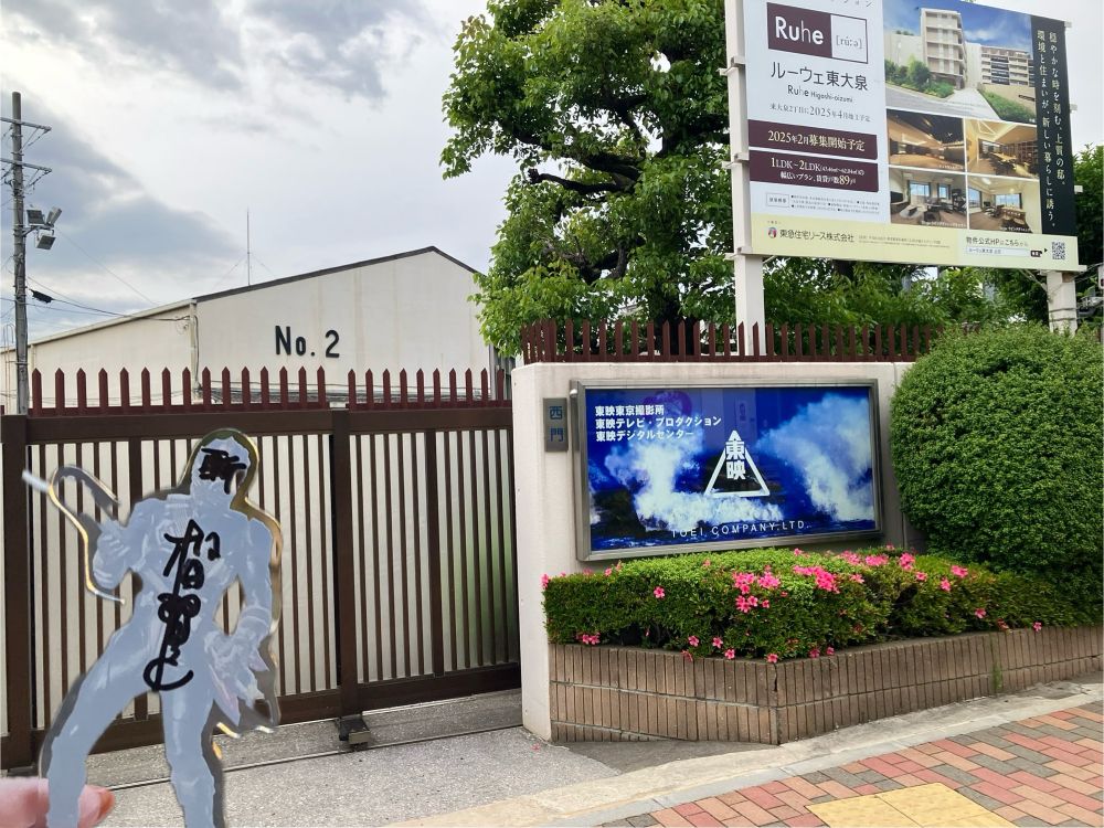 大泉学園で東映の撮影所も見てきた!めっちゃ住宅街でビックリしたw一周しようと思ったら違う道に続いてて迷子になった(斬鬼さんと撮り忘れたのでステッカー)